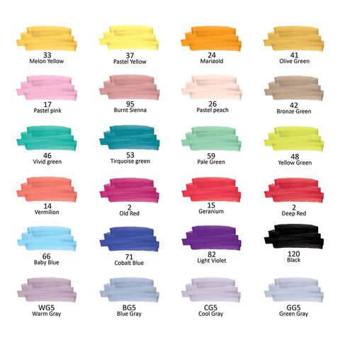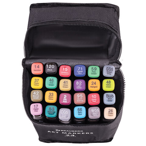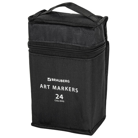 Маркеры для скетчинга двусторонние, НАБОР 24 шт., базовые цвета, в чехле, BRAUBERG, 152295