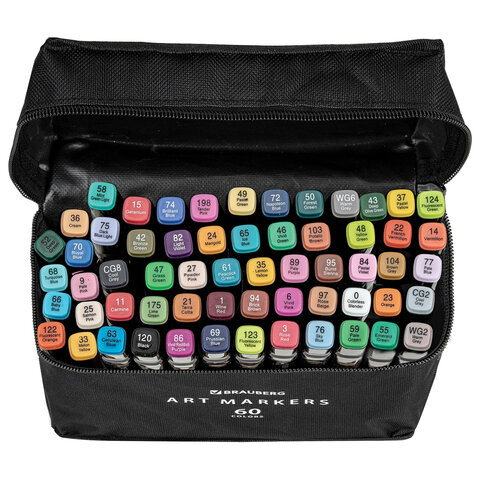 Маркеры для скетчинга двусторонние, НАБОР 60 шт., текстильный чехол, BRAUBERG, 152232