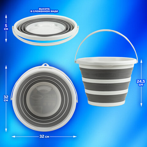 Ведро складное силиконовое 10 литров круглое d=32 см для дома, дачи и авто, LAIMA Home, 608668