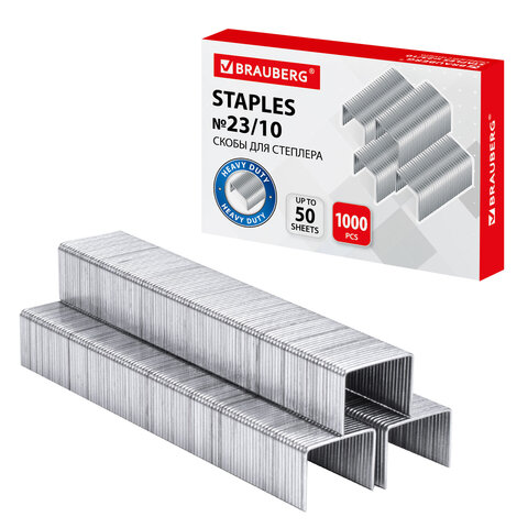Скобы для степлера №23/10, 1000 штук, BRAUBERG, от 20 до 50 листов, 221163