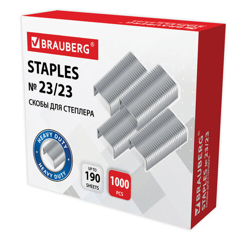 Скобы для степлера №23/23, 1000 штук, СВЕРХПРОЧНЫЕ, от 110 до 190 листов, BRAUBERG, 227718