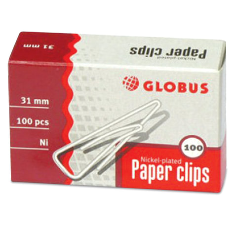 Скрепки, 31 мм, никелированные, с загнутым краем, треугольные, 100 шт., в картонной коробке, GLOBUS, С31-100Н