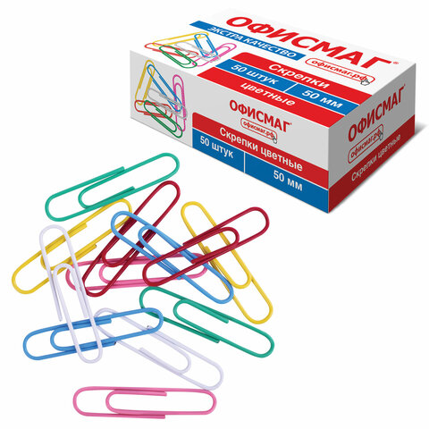 Скрепки большие ЭКСТРА ОФИСМАГ 50 мм цветные 50 штук, 271318