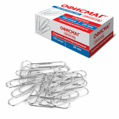 Скрепки ЭКСТРА ОФИСМАГ 28 мм никелированные 100 штук, 271315