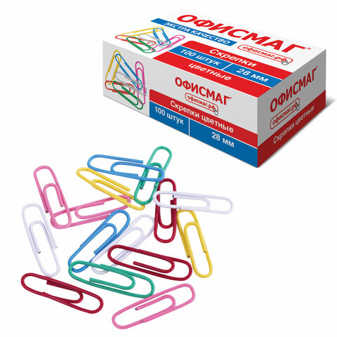 Скрепки ЭКСТРА ОФИСМАГ 28 мм цветные 100 штук, 271316