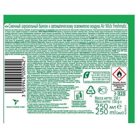 Сменный баллон AIRWICK предназначен для ароматизации воздуха и удаления неприятных запахов в помещениях (офисе, ресторане, туалете, помещении для курения). Содержит натуральные масла и экстракты водных растений.