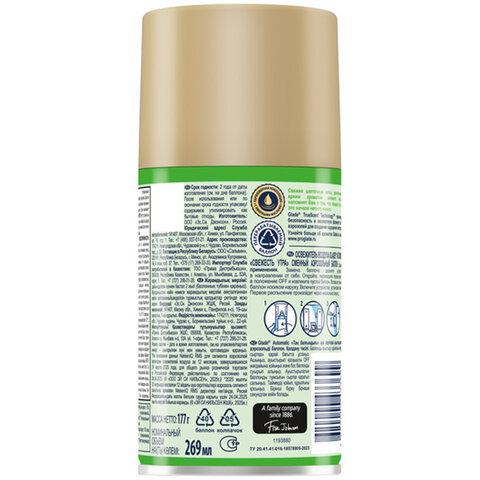 Аромат сменного баллона GLADE "Свежесть утра" с нотами зеленого яблока, весенних цветов и утренней росы подарит заряд бодрости и хорошее настроение на весь день.