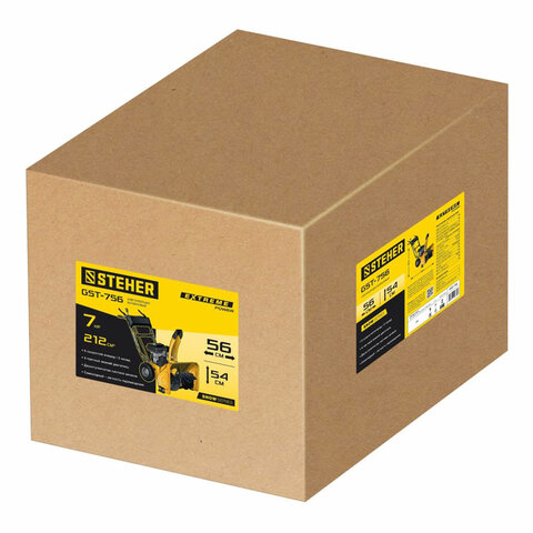 Бензиновый снегоуборщик STEHER GST-756, 5150 Вт, 4-тактный, 7 л.с., объем двигателя 212 см3, GST-756