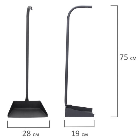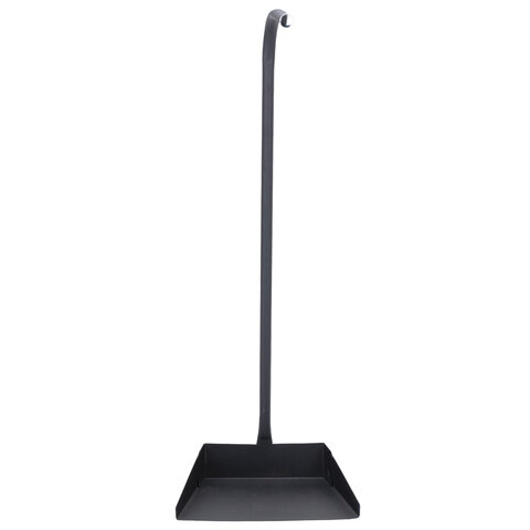 Совок для мусора 28х19см металл, ПРОЧНЫЙ высокая Г-образная ручка 75см, порошковый окрас, темно-серый, дом, офис, улица, ГРАНДМАСТЕР, 700351