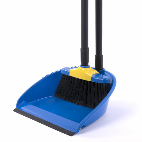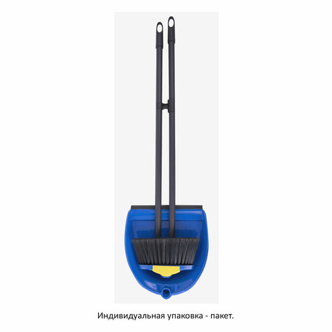 Совок для мусора КОМПЛЕКТ щетка + 2 рукоятки по 80 см с резьбой, пластиковые, "ЛЕНИВКА XL", синий, LAIMA, 608212