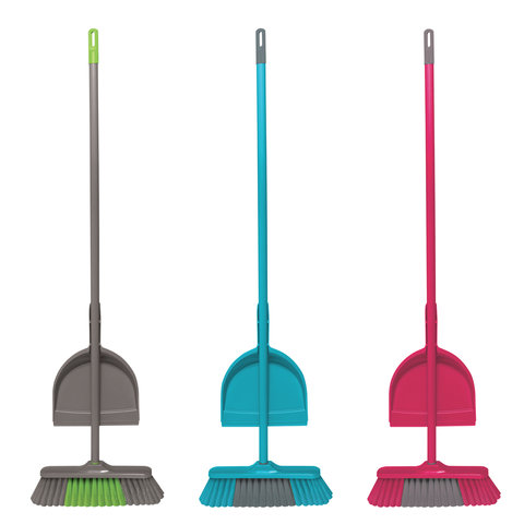 Комплект щетки с рукояткой и совком. Система "клик" позволяет крепить совок на рукоятке и облегчает хранение набора. На конце рукоятки расположена петля, на которой можно подвесить весь комплект на крючке. Привлекательные цвета щетины и пластика.