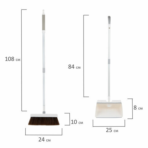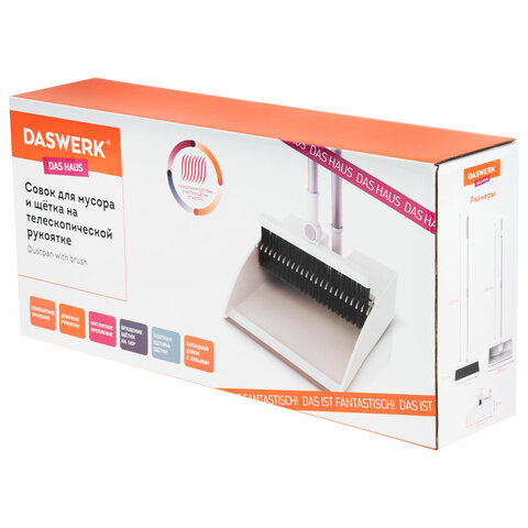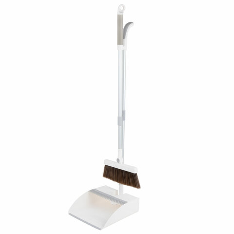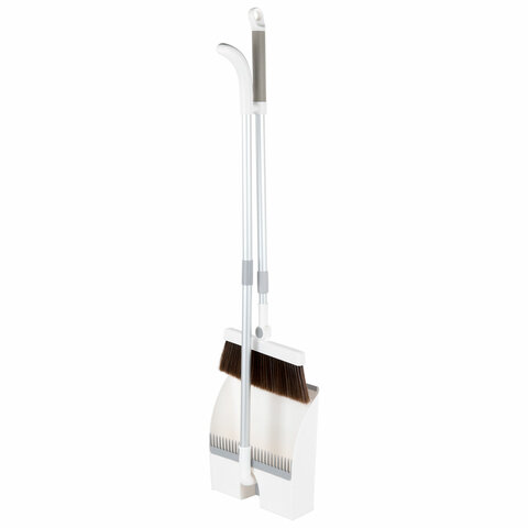 Совок для мусора КОМПЛЕКТ щетка + рукоятка совка 84см, щетки 63-108 см телескоп, магнитный держатель, бело-серый, колорбокс, DASWERK, 608950