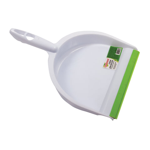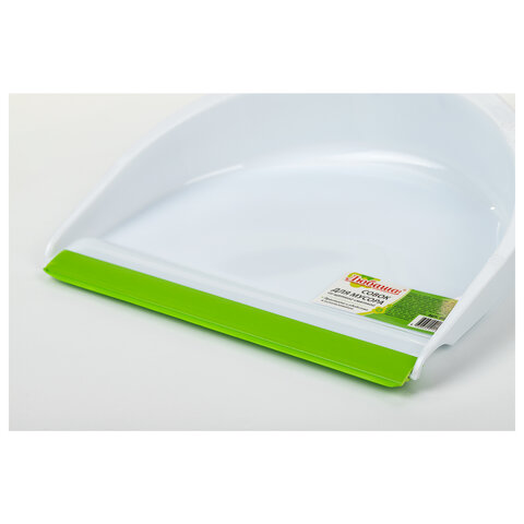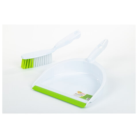 Совок для мусора КОМПЛЕКТ+ щетка сметка, пластиковые, резиновая кромка, бело-зеленый, ЛЮБАША, 603615