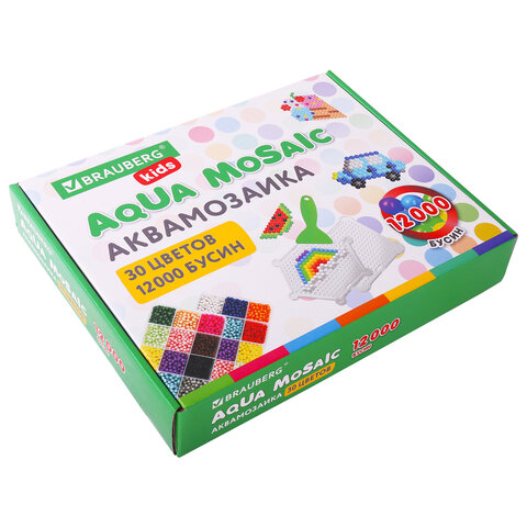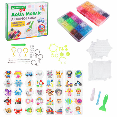 Аквамозаика 30 цветов 12000 бусин, с трафаретами, инструментами, аксессуарами, BRAUBERG KIDS, 664917
