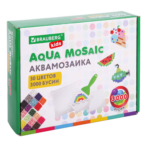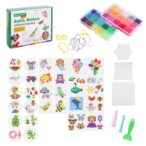 Аквамозаика 30 цветов 3000 бусин, с трафаретами, инструментами и аксессуарами, BRAUBERG KIDS, 664915