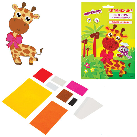 Аппликация из фетра ЮНЛАНДИЯ "Жираф" - это весёлый и занимательный способ развития мелкой моторики, аккуратности и фантазии ребёнка. Все элементы в составе самоклеящиеся, для работы не требуются ножницы и клей.