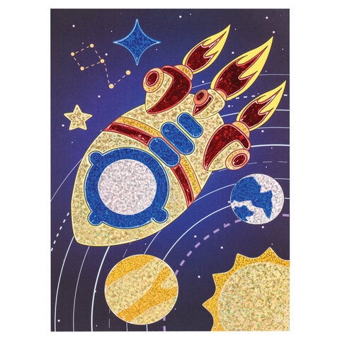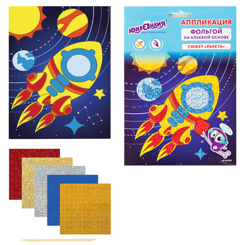 Набор для творчества "Аппликация из фольги", "Ракета", самоклеящаяся основа 20х15 см, ЮНЛАНДИЯ, 662383