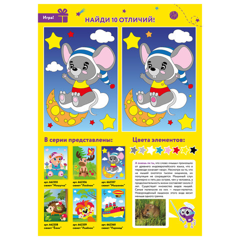 Набор для творчества "Аппликация из мягкого пластика EVA", "Мышонок", 21х29 см, ЮНЛАНДИЯ, 662357