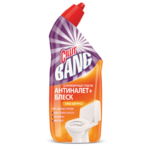 Средство для уборки туалета CILLIT BANG удаляет 100% известкового налета и ржавчины, эффективно очищает поверхность от загрязнений и придает аромат свежести и чистоты.