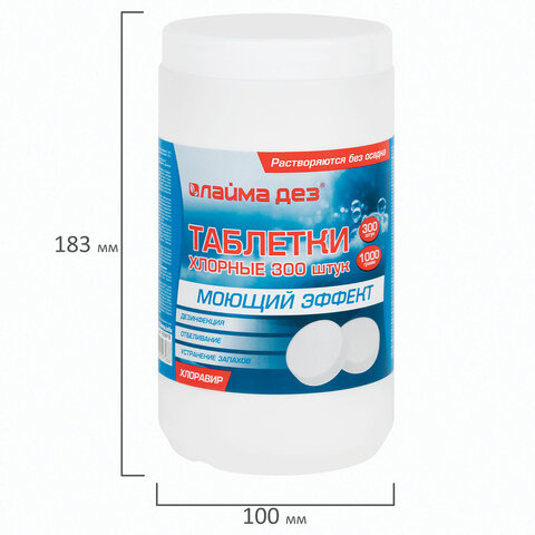 Средство дезинфицирующее с моющим эффектом, таблетки хлорные 300 шт., 1 кг, банка, ЛАЙМАДЕЗ, 609419