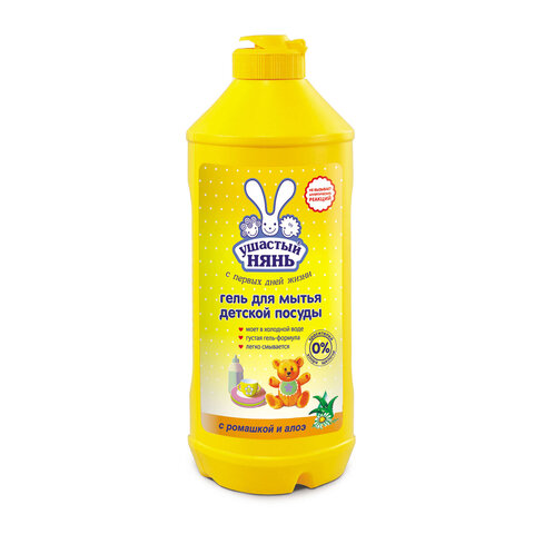 Средство для мытья посуды УШАСТЫЙ НЯНЬ "Ромашка и алоэ" создано специально для мытья детской посуды, бутылочек из стекла и пластика, сосок из латекса и силикона, игрушек.