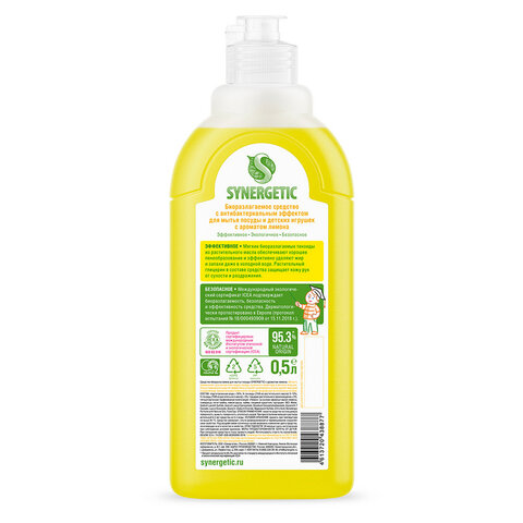 Гель для мытья посуды антибактериальный 500 мл, SYNERGETIC "Лимон", 103051