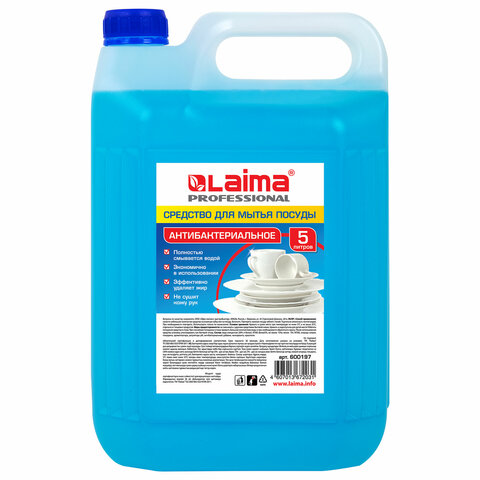 Средство для мытья посуды 5 л, ЛАЙМА PROFESSIONAL, антибактериальное, концентрат, 600197