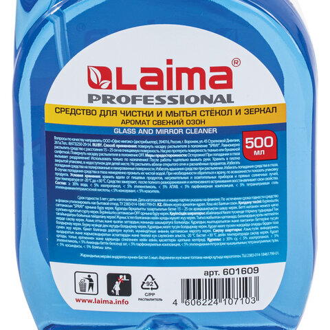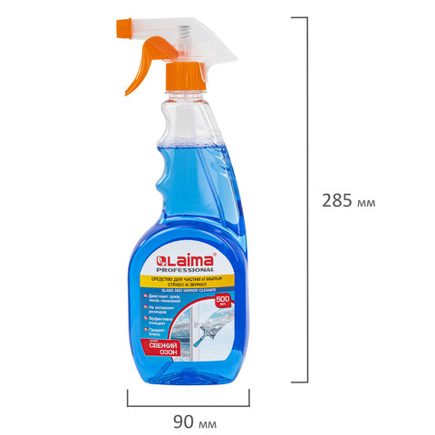 Средство для мытья стекол и зеркал 500 мл, LAIMA PROFESSIONAL, свежий озон, распылитель, 601609