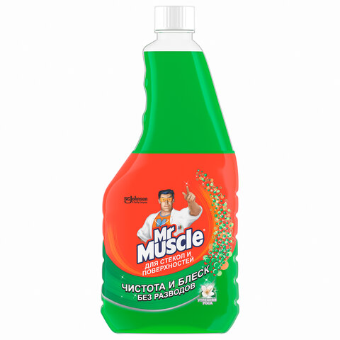 Чистящее средство для мытья стекол и поверхностей МИСТЕР МУСКУЛ "Утренняя Роса" эффективно удаляет пятна, следы от пальцев и другие загрязнения.