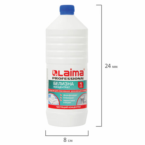 Средство для отбеливания, дезинфекции и уборки 1 л БЕЛИЗНА КОНЦЕНТРАТ (хлора 15-30%), LAIMA PROFESSIONAL, 606746