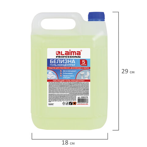 Средство для отбеливания, дезинфекции и уборки 5 л, БЕЛИЗНА-ГЕЛЬ (хлора 15-30%), LAIMA PROFESSIONAL, 606379