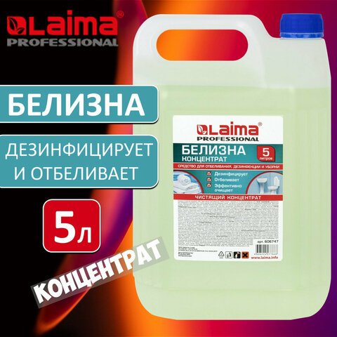 Средство для отбеливания, дезинфекции и уборки 5 л БЕЛИЗНА КОНЦЕНТРАТ (хлора 15-30%), LAIMA PROFESSIONAL, 606747