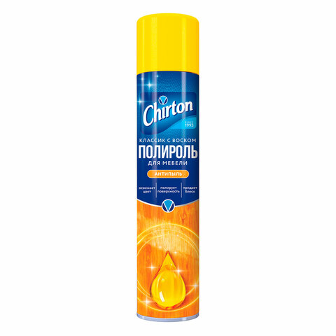 Полироль для мебели 300 мл, CHIRTON (Чиртон) антипыль, "Классик с воском", аэрозоль