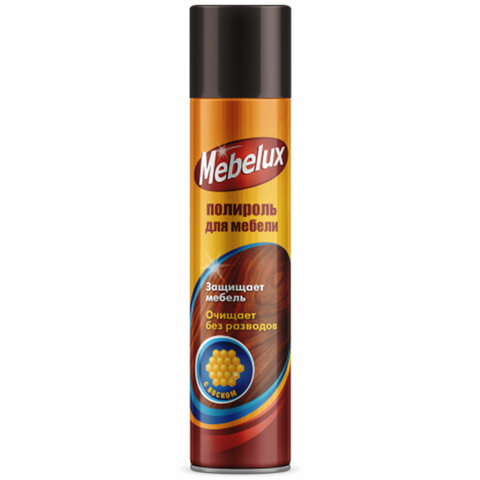 Полироль для мебели аэрозольный с воском 300 мл, MEBELUX, 4606682000718