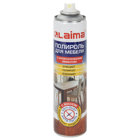 Полироль для мебели LAIMA "Антипыль" быстро и эффективно очищает, полирует и препятствует оседанию пыли, обладает антистатическим эффектом.