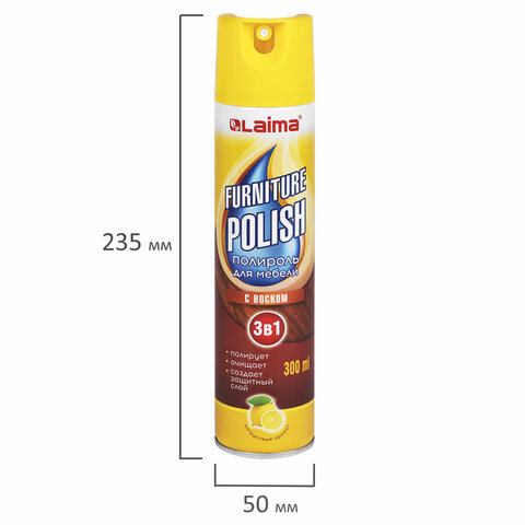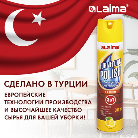 Полироль для мебели с воском и антистатиком 3 в 1, аэрозоль, 300 мл, LAIMA (Аналог PRONTO/ПРОНТО), ТУРЦИЯ, 608503