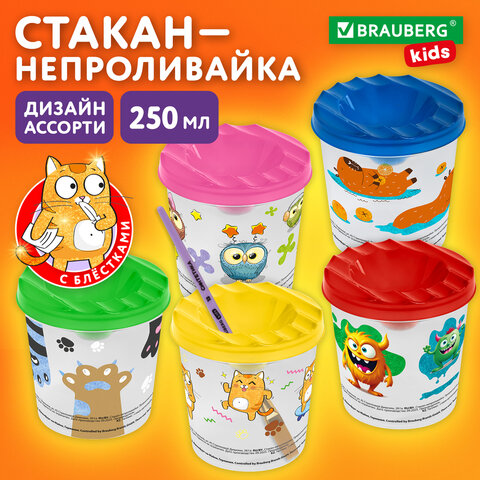 Стакан-непроливайка с рисунком, BRAUBERG KIDS, ассорти, 192737