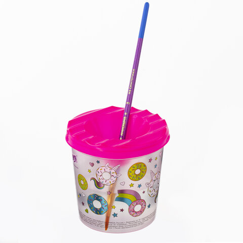 Стакан-непроливайка ЮНЛАНДИЯ из прочного пластика с оригинальным дизайном сделает процесс рисования более увлекательным.