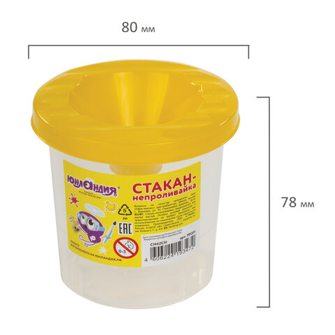 Стакан-непроливайка ЮНЛАНДИЯ предназначен для занятий рисованием красками.