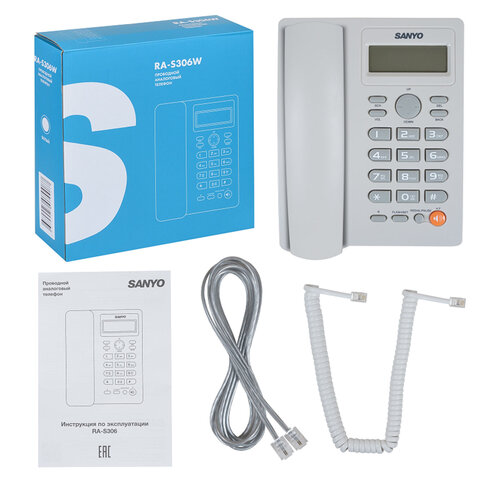 Стационарный телефонный аппарат SANYO RA-S306W это проводной аналоговый телефон с необходимым набором функций и стильным дизайном. Его отличает 16-значный ЖК-дисплей с часами и определение номера вызывающего абонента с памятью на 50 входящих номеров.