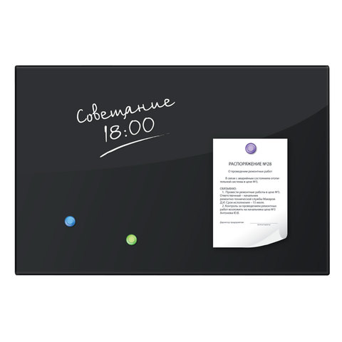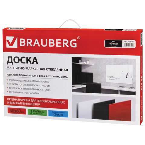 Доска магнитно-маркерная стеклянная 40х60 см, 3 магнита, ЧЕРНАЯ, BRAUBERG, 236745