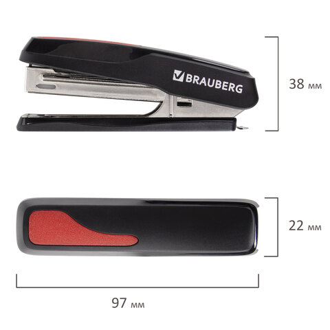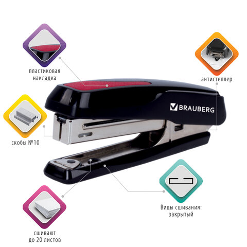 Степлер №10 BRAUBERG "Extra", до 20 листов, антистеплер, черно-красный, 229079