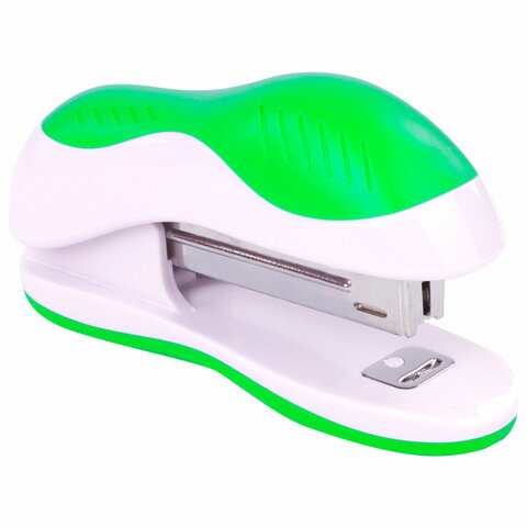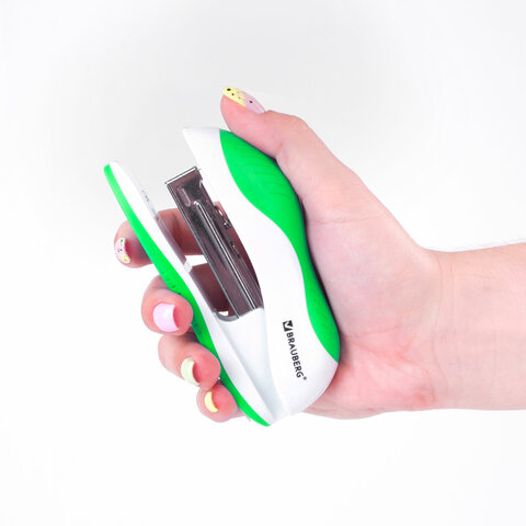 Степлер №10 BRAUBERG "JET", до 15 листов, эргономичный, бело-зеленый, 228580