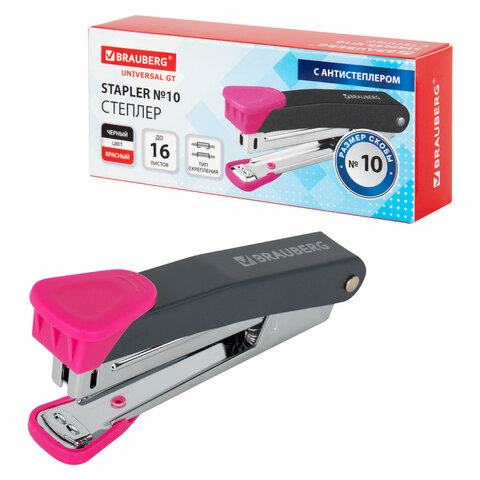 Степлер №10 металлический BRAUBERG "UNIVERSAL GT", до 16 листов,с антистеплером, красный, 272751