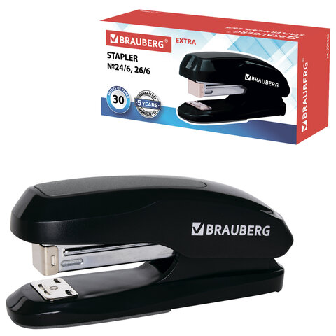Степлер №24/6, 26/6 BRAUBERG "Extra", до 30 листов, черно-серый, 229086