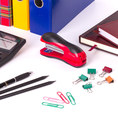 Степлер №24/6, 26/6 BRAUBERG "JET", до 25 листов, эргономичный, красно-черный, 229688