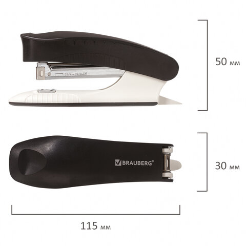 Степлер №24/6, 26/6 BRAUBERG "METROPOLIS", до 30 листов, черный, 228752