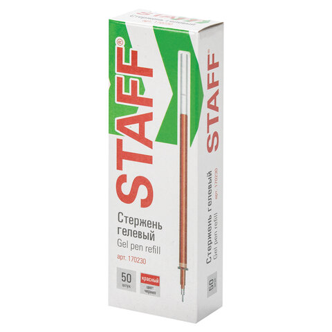 Стержень гелевый STAFF "Basic" GPR-229, 135 мм, КРАСНЫЙ, игольчатый узел 0,5 мм, линия 0,35 мм, 170230
