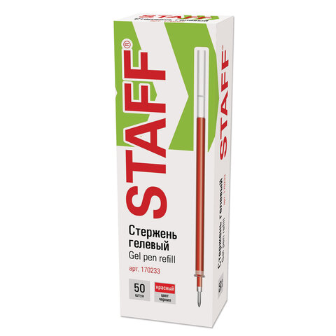 Стержень гелевый STAFF "Basic" GPR-232, 135 мм, КРАСНЫЙ, узел 0,5 мм, линия письма 0,35 мм, 170233