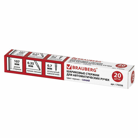 Стержень шариковый BRAUBERG 107 мм, с ушками, СИНИЙ, игольчатый узел 0,7 мм, линия письма 0,35 мм, 170356
